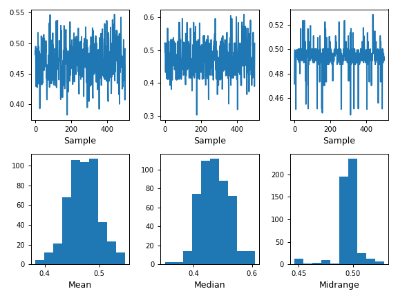 pandas.plotting.bootstrap_plot # pandas.plotting。bootstrap_plot (系列,无花果=无,大小= 50 ,样本= 500 , ** kwds ) [来源] # 平均值、中位数和中间范围统计数据的引导图。 Bootstrap 图用于依靠带替换的随机抽样来估计统计量的不确定性[1]。此函数将为给定大小的给定数量的样本生成平均值、中位数和中间范围统计数据的自举图。 [ 1 ] https://en.wikipedia.org/wiki/Bootstrapping_%28statistics%29中的“Bootstrapping(统计)” 参数: 系列pandas.Series从哪里获取引导样本的系列。 Fig matplotlib.figure.Figure,默认 None如果给定,它将使用无花果参考进行绘图,而不是使用默认参数创建新的参考。 大小int,默认 50每次采样期间要考虑的数据点数量。它必须小于或等于该系列的长度。 样本int,默认 500执行引导程序的次数。 **kwds传递给 matplotlib 绘图方法的选项。 返回: matplotlib.figure.图Matplotlib 图。 也可以看看 pandas.DataFrame.plotDataFrame 对象的基本绘图。 pandas.Series.plotSeries 对象的基本绘图。 例子 此示例绘制了系列的基本引导图。 >>> s = pd.Series(np.random.uniform(size=100)) >>> pd.plotting.bootstrap_plot(s) <Figure size 640x480 with 6 Axes>
